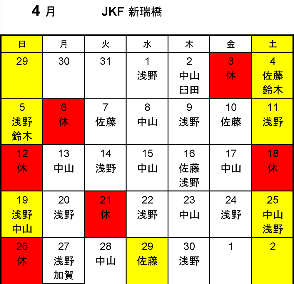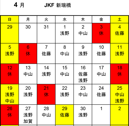 相互行き来自由 JKF池下 のスケジュール